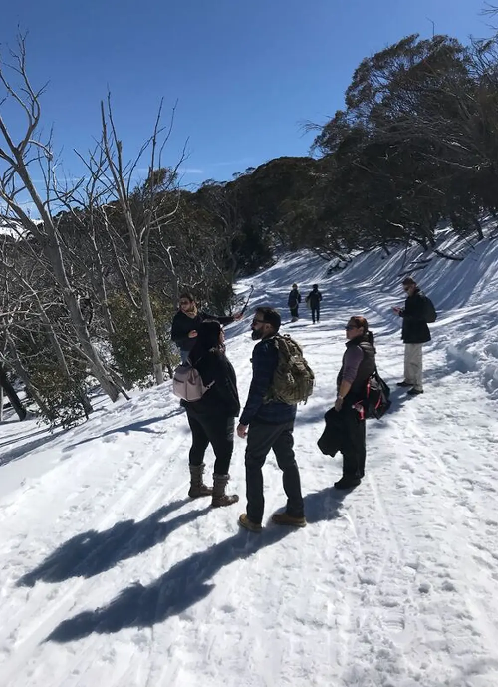 We take a short break to stretch our legs and enjoy some morning tea before we begin the climb into the high country. It’s the perfect time to grab a coffee and fuel up for the snow.